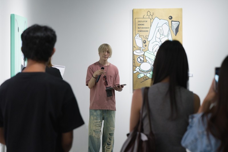 ด้วยลายเส้นที่เป็นอิสระ สีสันอันโดดเด่น และพลังความสนุกในสไตล์กราฟฟิตี้ นิทรรศการนี้ชวนผู้ชมออกสำรวจความเชื่อมโยงระหว่างโลกภายนอกกับโลกภายในอันคาดเดาไม่ได้ เพื่อค้นหาความหมายและสายใยเล็ก ๆ ที่ซ่อนอยู่ในทุกมิติของชีวิต