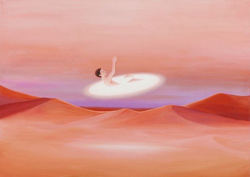 POWER OF HOPE (2563) โดย ก้องกาน - กันตภณ เมธีกุล : บันทึกความรู้สึกในช่วงโควิด-19 ผ่านภาพทะเลทรายสีชมพูอันเป็นสัญลักษณ์ของความหวัง และ ‘ประตูมิติ’ ที่เป็นลายเซ็นของศิลปิน ผลงานชิ้นนี้เปลี่ยนภาพความยากลำบากให้กลายเป็นพลังเชิงบวกตามชื่อ ราคาเริ่มต้น 600,000 บาท
