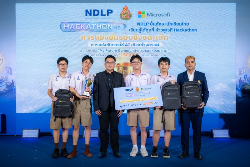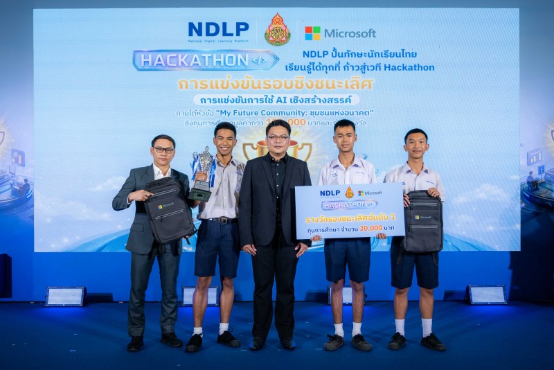 สำนักงานคณะกรรมการการศึกษาขั้นพื้นฐาน (สพฐ.) ผนึกกำลัง บ. ไมโครซอฟท์ (ประเทศไทย) เดินหน้าเชิงรุก ยกระดับระบบการศึกษาไทยเข้าสู่ยุคใหม่ สร้างโอกาสการเรียนรู้ทักษะดิจิทัลและ AI ให้แก่เยาวชน ผ่านแพลตฟอร์มการศึกษาระดับชาติ หรือ National Digital Learning Platform (NDLP) คิกออฟโปรเจ็คท์แรกอย่างเป็นรูปธรรม จัดการแข่งขัน AI Hackathon ภายใต้หัวข้อ “My Future Community - ชุมชนแห่งอนาคต” ชิงทุนการศึกษากว่า 150,000 บาท ซึ่งถือเป็นก้าวแรกของความร่วมมือ โดยมุ่งเปิดโอกาสให้นักเรียนระดับมัธยมศึกษาตอนปลายจาก 1,018 โรงเรียนนำร่อง ทั่วประเทศที่ใช้แพลตฟอร์ม NDLP ได้นำทักษะ AI ระดับโลกมาคิดค้นแนวทางแก้ไขปัญหาจริงในชุมชนของตนเอง และคัดเลือกจนเหลือ 8 ทีมสุดท้ายเข้าสู่รอบชิงชนะเลิศ เพื่อพัฒนาทักษะการคิดวิเคราะห์ การแก้ปัญหาเชิงสร้างสรรค์ใน Hackathon Workshop เรียนรู้ในการสร้าง pitch deck ไอเดียการแก้ไขปัญหาและสร้าง Smart Community รวมถึงได้รับคำแนะนำจากผู้เชี่ยวชาญอย่างใกล้ชิดก่อนถึงวันแข่งขันรอบชิงชนะเลิศ โดย สพฐ.และไมโครซอฟท์ ตั้งเป้าผลักดันให้เกิดการเรียนรู้ดิจิทัลและ AI ทั่วประเทศ ด้วยแผนขยายการเข้าถึงไปยังโรงเรียนในสังกัด สพฐ. ให้ครอบคลุมทั้งหมดกว่า 29,000 โรงเรียนให้ได้ภายในปลายปี 2569 เพื่อให้เยาวชนไทยทุกคน ไม่ว่าจะอยู่ที่ใด มีโอกาสเท่าเทียมกันในการเรียนรู้และสร้างสรรค์ด้วย AI