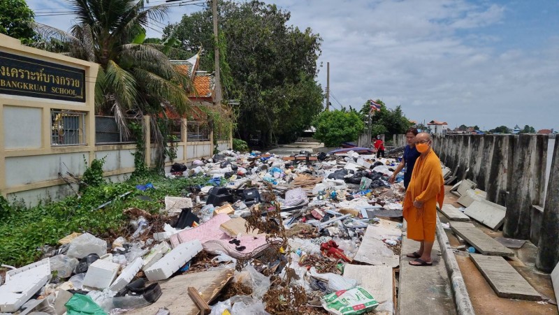 วันที่ 21 ส ค 65 เมื่อเวลา 13.00 น. จากคลิปวีดีโอของนักท่องเที่ยวรายหนึ่งที่เดินทางไปทำบุญที่วัดลุ่มคงคาราม ต.บางกรวย อ.บางกรวย จ.นนทบุรี ซึ่งเป็นวัดที่ตั้งอยู่ติดกับริมแม่น้ำเจ้าพระยา เพื่อชื่นชมทัศนียภาพ แต่ปรากฏว่าพบกับกองขยะจำนวนมหาศาลซึ่งถูกนำมาทิ้งกองสุมอยู่หลังเขื่อนหน้าโรงเรียนศึกษาสงเคราะห์บางกรวยและหน้าวัดลุ่ม ส่งกลิ่นเหม็นเน่าคละคลุ้ง ไร้หน่วยงานที่ดูแลรับผิดชอบในพื้นที่มาดูแล