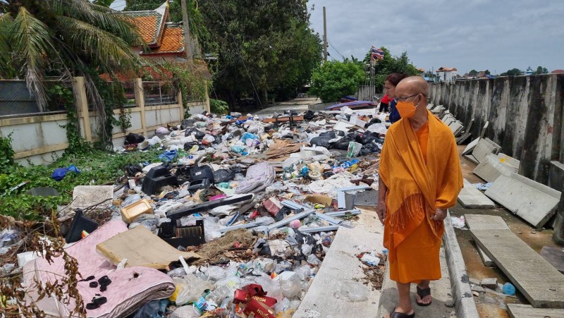 นนทบุรี : ชาวบ้านมักง่าย ลักลอบทิ้งขยะเกลื่อนหน้าวัด เจ้าอาวาสพ้อไร้หน่วยงานเหลียวแล